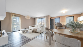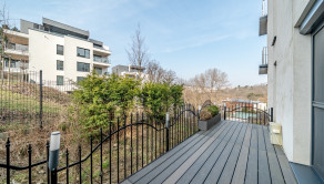 BYT: Celková podlahová plocha bytu je 138,17 m2, z čoho terasa tvorí 34 m2 – ideálna na relax a posedenia – a balkón 5 m2. Dispozične byt pozostáva z priestrannej obývacej izby prepojenej s kuchyňou, spálne s walk-in šatníkom, detskej izby, kúpeľne, samostatnej toalety a vstupnej predsiene. Šatník vďaka svojej veľkosti ponúka aj atraktívny potenciál do budúcna - je možné ho upraviť napríklad na ďalšiu kúpeľňu s toaletou. Byt sa nachádza na tichej adrese na Hradnom kopci, ktorá poskytuje vysokú mieru súkromia. Parkovanie je možné riešiť dokúpením jedného alebo dvoch garážových státí.