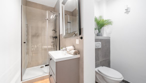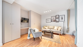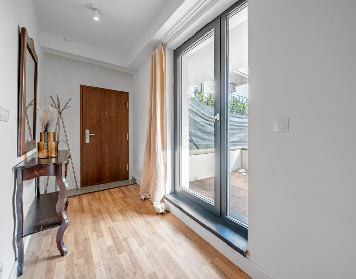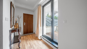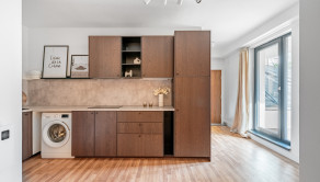 BYT: Celková výmera je 101,61 m2, z toho terasa s predzáhradkou má 64 m2. Byt sa nachádza na 1. NP v novostavbe s výťahom a vďaka juhovýchodnej orientácii pôsobí príjemne svetlo počas celého dňa. Dispozične byt pozostáva zo vstupnej chodby, obývacej miestnosti so samostatnou časťou na spanie, kuchyne, kúpeľne s toaletou a priestrannej terasy/predzáhradky s možnosťou zasklenia. Dispozícia je praktická a flexibilná, vhodná pre jednotlivca alebo pár.