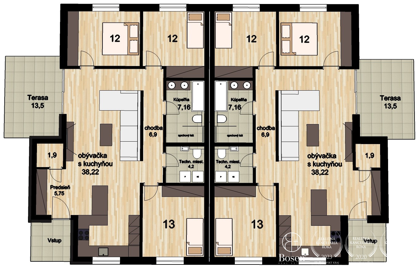 Realitná kancelária BOSEN GROUP je členom Realitnej únie SR a riadi sa jej Realitným kódexom. Uvedená cena je konečná, zahŕňa províziu realitnej kancelárie, právny servis zabezpečovaný advokátskou kanceláriou, úhradu základného správneho poplatku na katastri, poradenstvo k prevodu nehnuteľnosti a bezplatnú ponuku financovania prostredníctvom hypotéky.