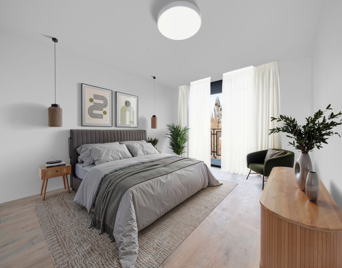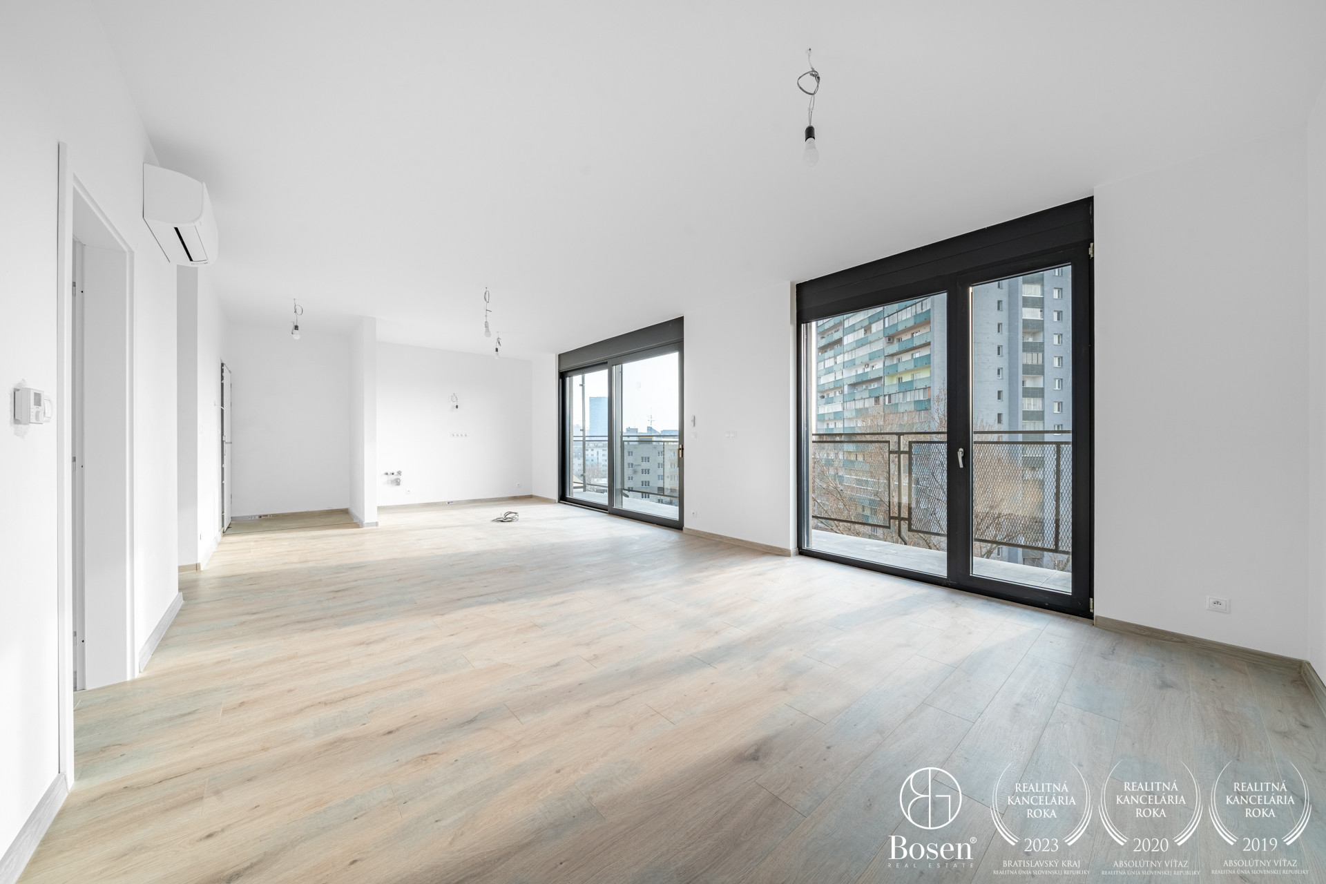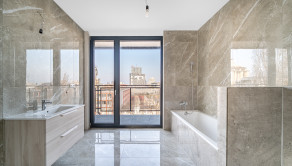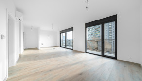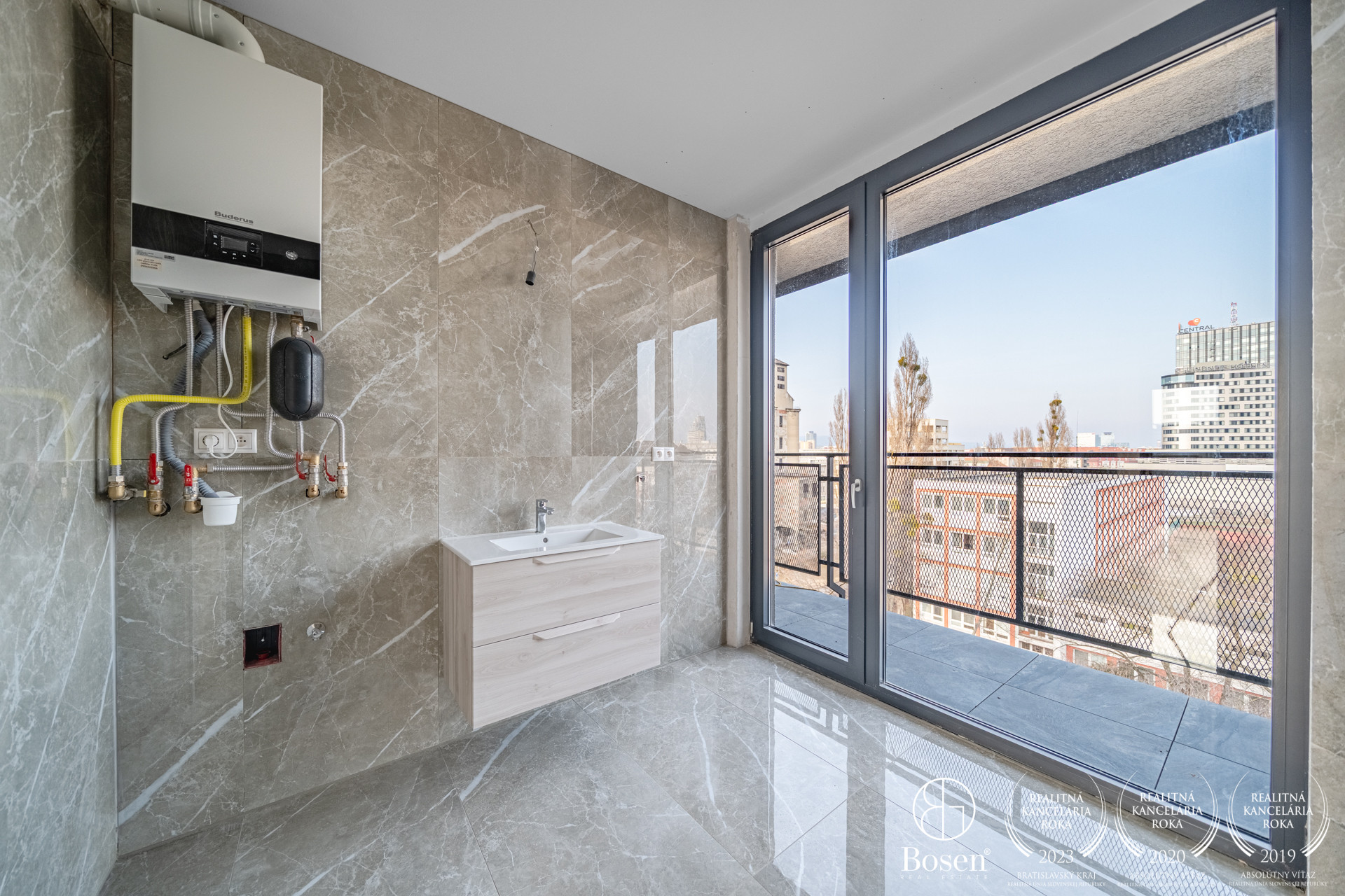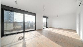 BYT: Celková podlahová plocha bytu je 85,9 m2, z čoho dve terasy tvoria 16,13 m2 - ideálny priestor na rannú kávu a oddych. Byt sa nachádza na najvyššom 7 nadzemnom podlaží. Byt disponuje vlastným plynovým kotlom, podlahovým kúrením a 2 klimatizačnými jednotkami. Dispozične byt pozostáva zo vstupnej predsiene, obývacej izby prepojenej s kuchyňou, spálne, šatníka a kúpeľne s toaletou. Orientovaný je na SV (spálňa, kúpelňa) a JZ (obývačka, kuchyňa). V oboch izbách sú vonkajšie automatické žalúzie. Výstup na balkón je z každej izby, ako aj kúpeľne.