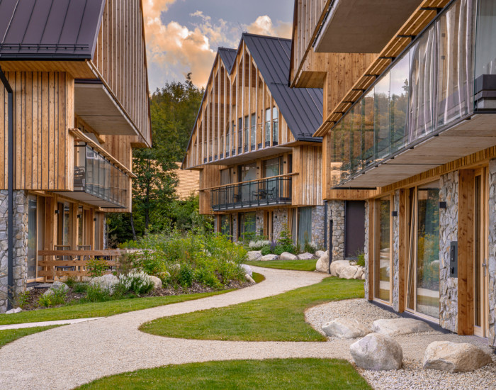 APARTMÁN: Celková výmera apartmánu je 33,3 m² vrátane priestranného krytého balkóna. Vďaka polohe na najvyššom podlaží ponúka nerušené výhľady, maximálne súkromie a jedinečnú atmosféru horského útočiska. Interiér prepája moderný alpský štýl s nadčasovou eleganciou. Technické parametre: podlahy olejovaný a kartáčovaný dub, drevo-hliníkové okná s trojsklom, obklady stien a stropov z pigmentovaného a olejovaného smreku, LED osvetlenie, otváranie chipom v celom rezorte, podlahové kúrenie s možnosťou regulovania na diaľku, veľkoformátová dlažba.