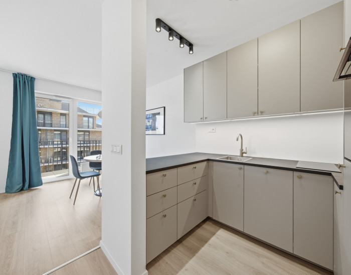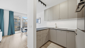 ZARIADENIE: Byt sa prenajíma zariadený. Kuchynská časť je vybavená modernou kuchynskou linkou so vstavanými spotrebičmi – indukčnou varnou doskou, elektrickou rúrou, umývačkou riadu a chladničkou s mrazničkou. Súčasťou kuchyne je aj jedálenský stôl so stoličkami.