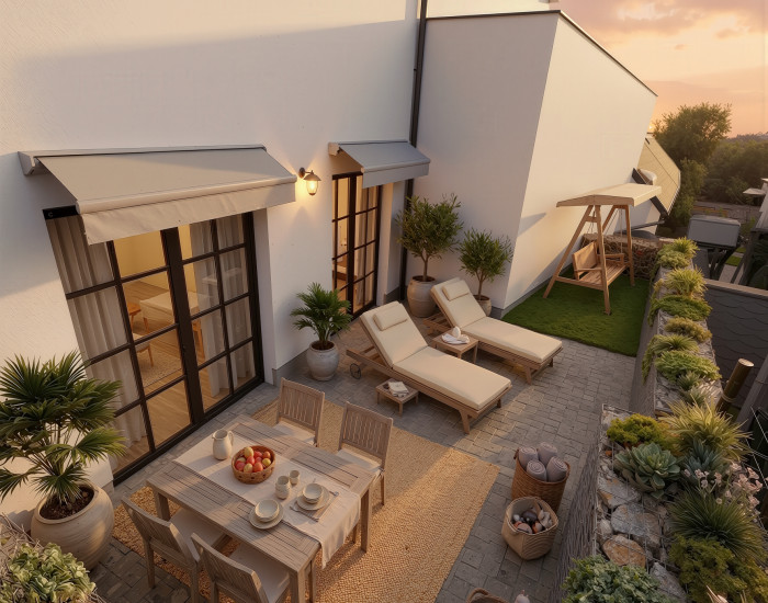 • bezpečnostné vchodové dvere ADLO• sadrové omietky• kvalitné laminátové podlahy• keramická dlažba a keramický obklad v kúpeľni a v kuchyni• kúpeľne vybavené zariaďovacími predmetmi zdravotechniky• vodné podlahové kúrenie• kúrenie zabezpečené cez tepelné čerpadlo vzduch - voda• centrálne vetranie s rekuperáciou• hliníkové okná so zvukovo a tepelne-izolačným 3 sklom• keramické dlažby s protišmykovou úpravou na terasách a balkónoch• príprava pre klimatizáciu• elektrické hliníkové exteriérové žalúzie• parkovanie sa dokupuje samostatne• pivnice sa dokupujú samostatne