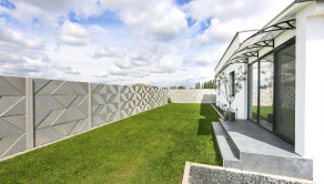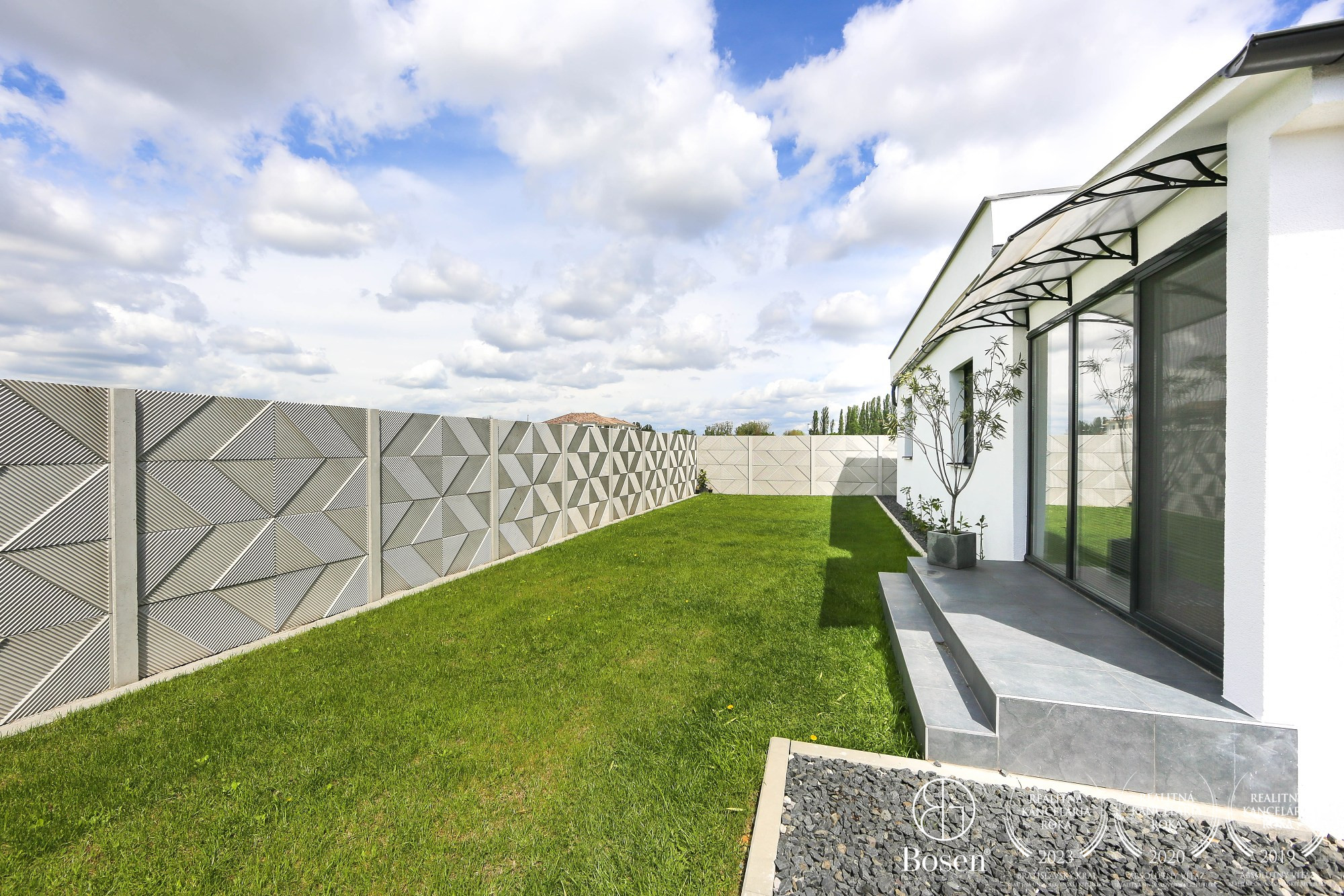 EXTERIÉR A POZEMOK: Rovinatý pozemok je pripravený na finálne dotvorenie podľa Vašich predstáv. O udržiavaný trávnik sa postará automatický zavlažovací systém napojený na vlastnú studňu, čo predstavuje výraznú úsporu prevádzkových nákladov. Pocit absolútneho súkromia a bezpečia umocňuje estetické bariérové oplotenie z betónových tvárnic, ktoré lemuje celý obvod nehnuteľnosti a architektonicky dotvára jej moderný ráz.