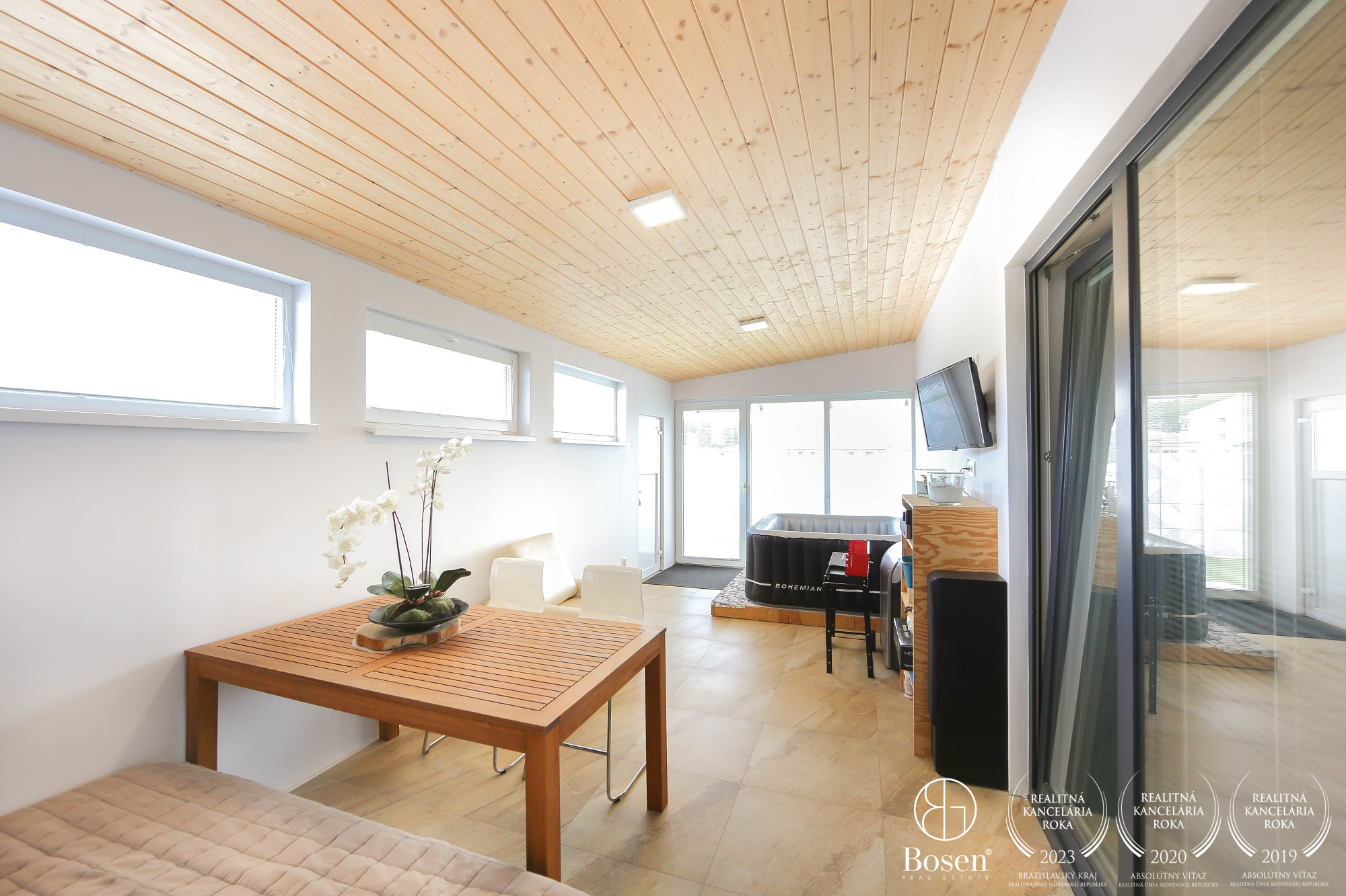 RODINNÝ DOM: Novostavba s kolaudáciou v roku 2025 je postavená z vysoko kvalitných materiálov, ktoré zaručujú vynikajúcu energetickú efektivitu a dlhú životnosť. Dom so zastavanou plochou 208 m² (úžitková plocha 159 m²) pôsobí vďaka veľkorysým preskleniam mimoriadne vzdušne. Unikátnym benefitom je teplovodné podlahové kúrenie, ktoré je zavedené v celom objekte – vrátane priestrannej dvojgaráže a kompletne zastrešenej terasy, čo z nej robí plnohodnotný priestor na relax v každom ročnom období.