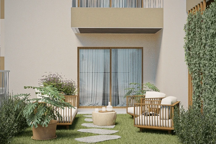 Byty na prízemí majú priamy prístup do starostlivo oploteného súkromného dvora, ktorý poskytuje maximálne súkromie, výhľad a jedinečný zážitok z bývania. Dvor je priestranný, zatrávnený a upravený, ideálny na oddych, spoločenské stretnutia alebo rekreačné aktivity.