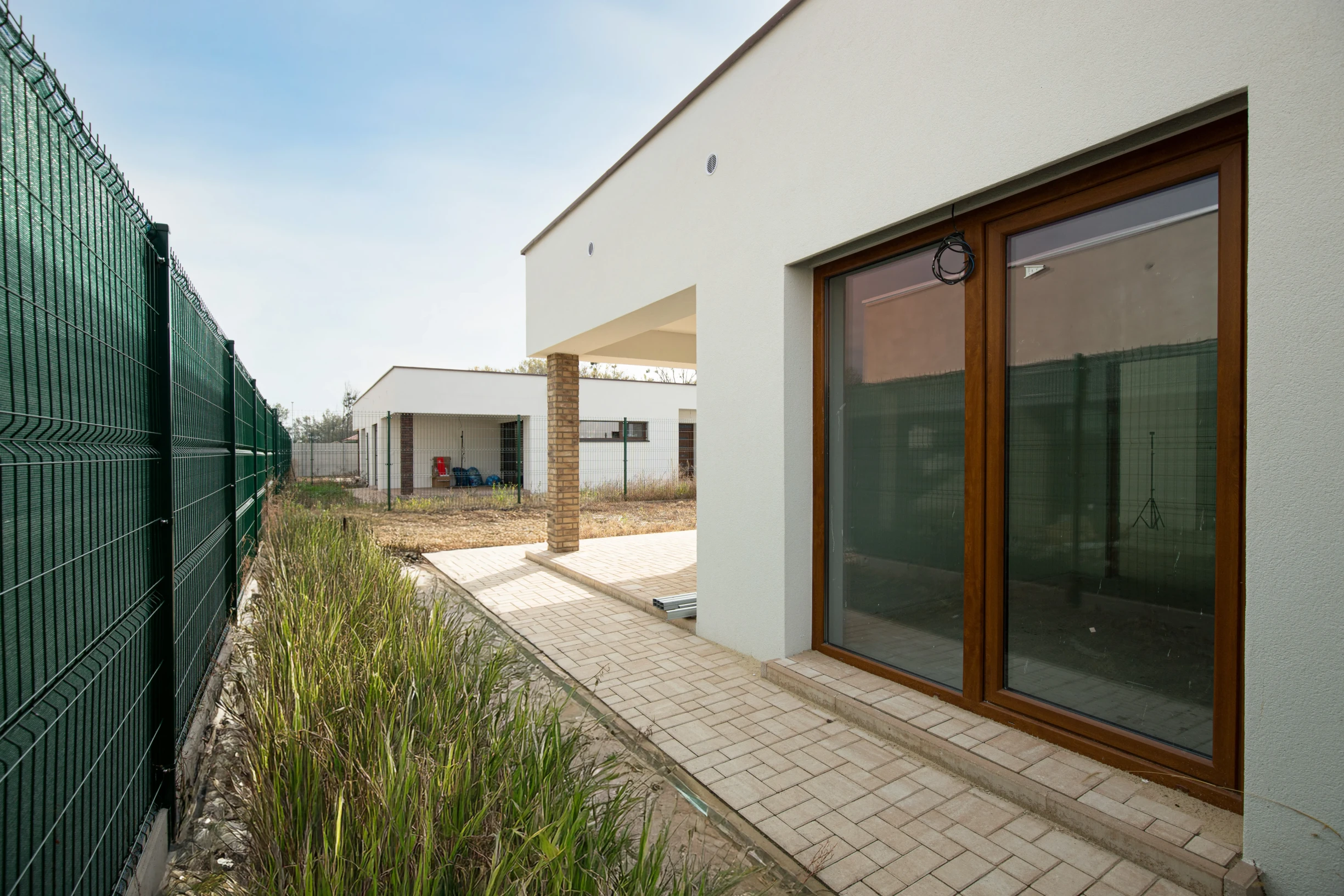 NOVOSTAVBA skolaudovaného rodinného domu s dvoma bytmi, postavený z tehly Wienerberger 25 cm, zateplený polystyrénom 20 cm, okná 6 komorové plastové s 3-sklom a predprípravou na vonkajšie elektrické tienidlá (žalúzie alebo rolety), pod strechou izolácia s minerálnou vlnou 40 cm. Dom napojený na obecný vodovod, elektrinu, žumpu na pozemku (11 m3) predpríprava pre napojenie na kanalizáciu, predpríprava na klimatizáciu. Pozemok oplotený z každej strany, s bránkou a bránou.