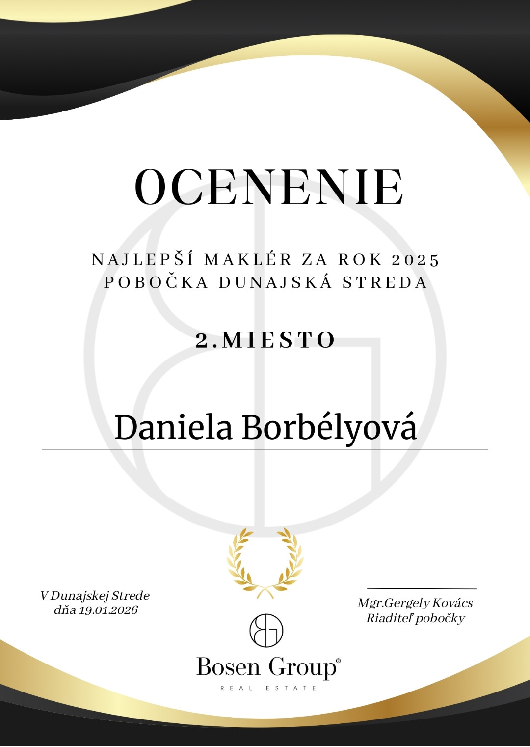 S tímom BOSEN Group spolupracujem s hrdosťou, pretože ide o spoločnosť s bohatými skúsenosťami, ktorá je členom Realitnej únie SR aj Národnej asociácie realitných kancelárií Slovenska. Ako viacnásobný víťaz prestížnych slovenských ocenení je pre mňa tou správnou voľbou – predstavuje nadčasovosť a silného partnera vo svete realít a investovania.