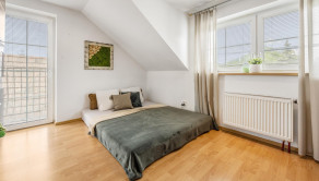 POSCHODIE: klimatizovaná hlavná spálňa, 2x detská izba prípadne pracovňa, kúpeľňa spojená s toaletou.