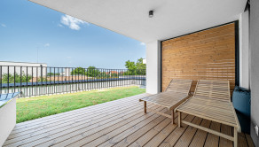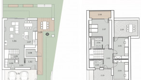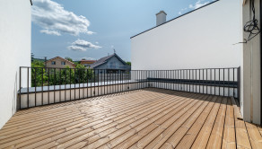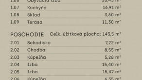 2NP – (143,3 m2) – schodisko, chodba, kúpeľňa s WC, terasa, izba, izba s veľkou terasou, izba s kúpeľňou s WC a terasou