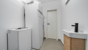 1NP – (117,4 m2) – carport, predsieň, chodba, práčovňa, WC, kuchyňa spojená s obývacou miestnosťou a s priamym vstupom na terasu, sklad, terasa