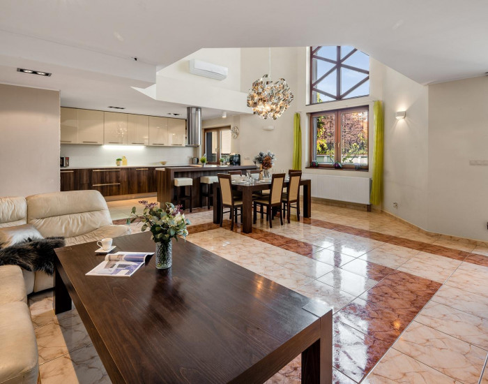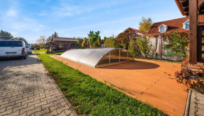 RODINNÝ DOM: Čiastočne zariadený dvojpodlažný dom bol postavený v roku 2004 a prešiel rekonštrukciou v roku 2013. Úžitkovú plochu má 280m2, má dve terasy, vonkajší bazén (8mx4mx1,5m), saunu a vírivku. Dom má teplovodné podlahové kúrenie zabezpečené plynovým kotlom a je aj s hospodárskou budovou napojený na alarm. V každej miestnosti je rozvod na TV a internet. K domu je vyhotovený znalecký posudok z konca roka 2021.