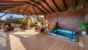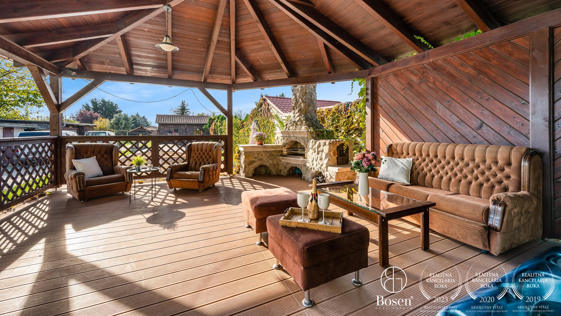 POZEMOK: Má veľkorysú rozlohu 2486m2. Rozľahlá záhrada poskytuje množstvo zelene, ovocných stromov a altátok napojený na elektrinu. Má automatickú závlahu napojenú na studňu. Zadná prestrešená terasa disponuje vonkajším krbom s grilom a vírivkou. Záhradnú techniku ľahko schováte v hospodárkej budove, kde je aj letná kuchyňa a druhá garáž.
