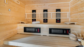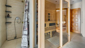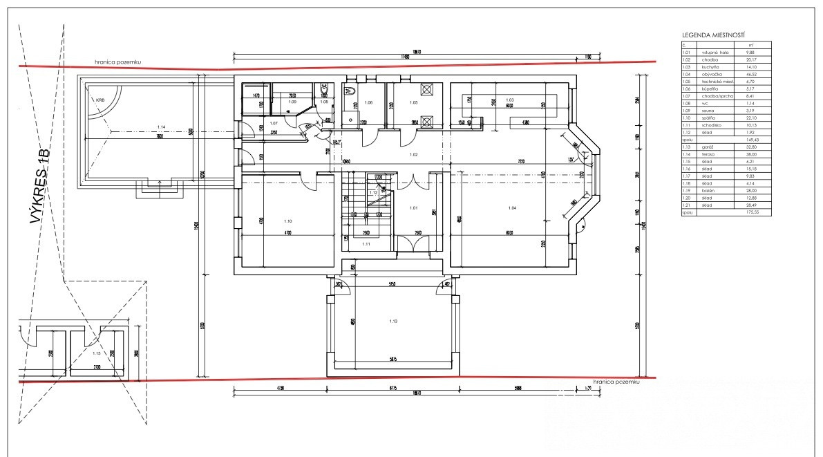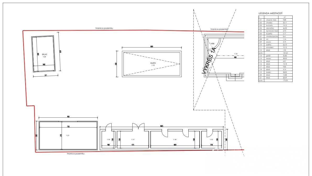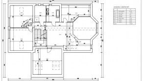 Prízemie: náchadza sa tu vstupná hala so vstavanou skriňou, technická miestonosť, obývacia izba s krbom spojená s kuchyňou a jedálňou, kúpeľňa s toaletou, práčovňa, izba a miestnosť so sanou, sprchovým kútom a samostatnou toaletou.