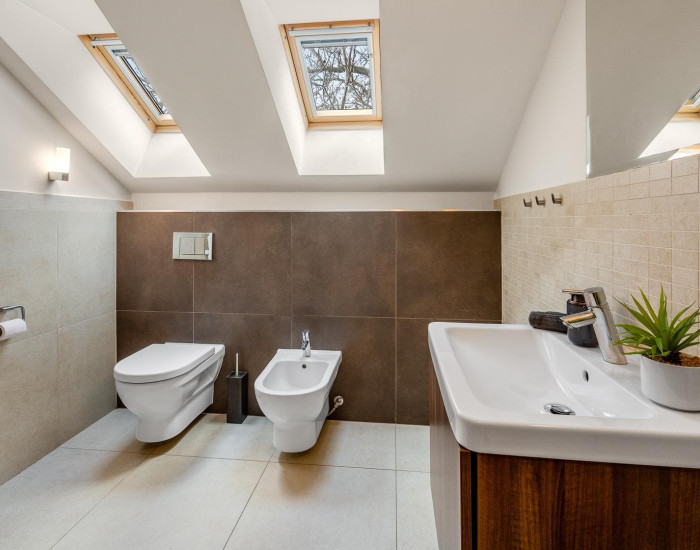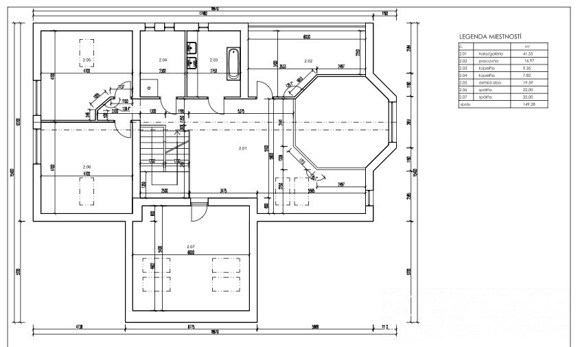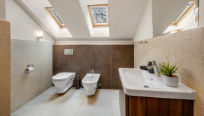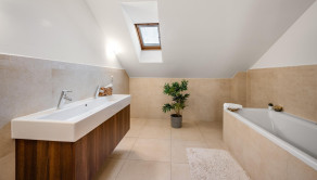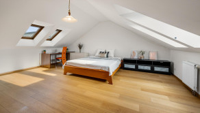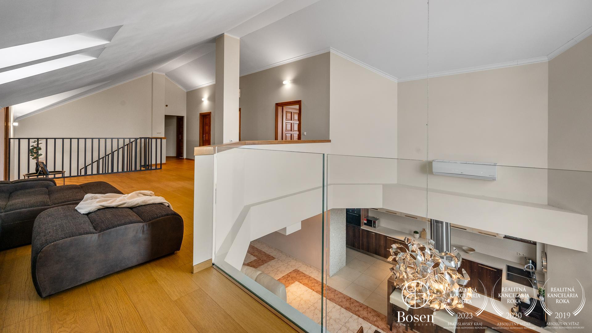 Poschodie: na druhom poschodí sa nachádza otvorená gáleria, 3 izby, 2x kúpelňa s toaletou a walk-in šatník, ktorý je možné prerobiť na d'aľšiu izbu.