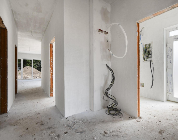 Holodom: vonkajšie obvodové murivo tehla Wienerberger – hrúbka 30 cm, vnútorná priečka Pezinská tehla – hrúbka 11,5 cm, zateplenie obvodového muriva – hrúbka 15 cm polystyrénových dosiek, fasádna omietka – hrúbka 1,5 cm, interiérové sadrové omietky, 20 + 20 cm stropná izolácia minerálnou vlnou, plastové okná a balkónové dvere 6 komorové – 3 sklo, bezpečnostné vchodové dvere so sklenenou výplňou, 2 teplovodné kúrenie, 2x 5 cm podlahová izolácia, elektrokotol, zásuvky + vypínače, elektrická poistná skrinka, optické a dátové káble, elektrická predpríprava na alarm, predpríprava na vonkajšie elektrické žalúzie.