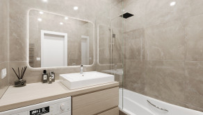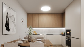 ŠTANDARD PROJEKTU: Novovznikajúci projekt disponuje solárnymi panelmi, systémom chladenia a vykurovania-fancoil, laminátovou podlahou, kvalitnou kúpeľňovou sanitou v kombinácií s gresovou dlažbou, plastovými oknami s izolačným trojsklom a bezpečnostnými vchodovými dverami.