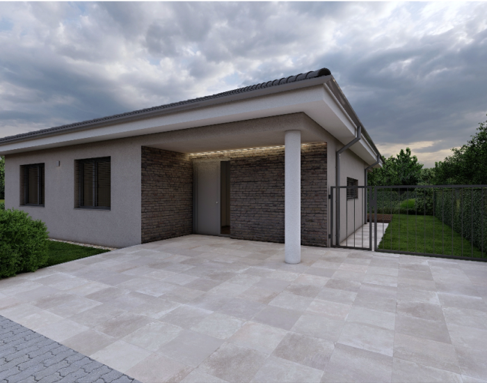 Ponúkame na predaj NOVOSTAVBU 4 izbového rodinného domu z projektu" bungalov Aurelius 2" s parkovacím státím v meste Trenčín.
