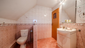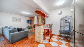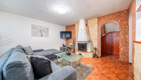 DOM: Má celkovú podlahovú plochu 184 m2. Nosné múry a deliace priečky sú z pálenej tehly. Vonkajšie zateplnenie domu je polystyrénom. Krov je celodrevený (Hambálkový) so strešnou krytinou (Bonského šindla). Podlahu v dome zdobí prevažne keramická dlažba až na dve izby, kde je položená plávajúca podlaha. Okná sú plastové s izolačným trojsklom, kovovými žalúziami a sieťkami proti hmyzu. Vykurovanie je pomocou elektrického kotla (zn. ENYZ), taktiež môžete využiť krb s teplovzdušnou krbovou vložkou. Dom sa predáva čiastočne zariadený.