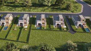 Dom: Štandard: obdĺžniková vaňa 170 x 70 cm + batérie + sifón s prepadom, sprchovací kút 90 x 90 cm + batérie + žľab, závesné WC v kúpeľni + zabudovaný splachovací systém, umývadlo 80 cm + batéria v kúpeľni, dlažba – vstupná chodba, WC, kúpeľňa, obklady v kúpeľni, interiérové dvere – biele, v ostatných miestnostiach parkety, vonkajšie obvodové murivo tehla Wienerberger – hrúbka 30 cm, vnútorná priečka Pezinská tehla – hrúbka 11,5 cm, zateplenie obvodového muriva – hrúbka 15 cm polystyrénových dosiek, fasádna omietka – hrúbka 1,5 cm, interiérové sadrové omietky, 20 + 20 cm stropná izolácia minerálnou vlnou, plastové okná a balkónové dvere 6 komorové – 3 sklo, bezpečnostné vchodové dvere so sklenenou výplňou, teplovodné kúrenie, 2x 5 cm podlahová izolácia, tepelné čerpadlo, zásuvky + vypínače, elektrická poistná skrinka, optické a dátové káble, elektrická predpríprava na alarm, elektrická predpríprava na studňu a závlahu, zabudované rozvody na klimatizáciu v obývačke, predpríprava na vonkajšie elektrické žalúzie.
