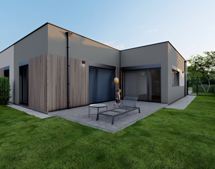 DOM: 4 izbový bungalov bude postavený v meste Trenčín časť Záblatie. Dom bude mať úžitkovú plochu 103 m2 a zastavanú 124 m2.