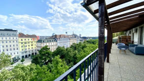 PRIESTOR: Má výmeru 190,88 m2 z čoho je terasa 59,58 m2 a nachádza sa na 6 p. z celkových 7 p. v administratívnej budove s výťahom. Priestor je orientovaný na námestie a teda na juhovýchodnú svetovú stranu.