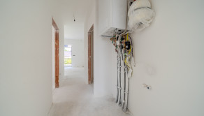 BYT: Výmera bytu je 87 m2 z čoho terasa tvorí 12 m2. Byt sa nachádza v skolaudovanej novostavbe rodinného domu s troma bytovými jednotkami. Nehnuteľnosť sa predáva v prevedení holobyt. Postavená je z tehly (obvodové múry 300 mm, akustická predstena 10 cm medzi obytnými miestnosťami). Bytový dom je kompletne zateplený (150 mm polystyrénom), podlahové kúrenie v celom byte, plynový kotol, bezpečnostné vchodové dvere, predpríprava na klimatizáciu a externé žalúzie. V prípade záujmu je možné dokončenie do štandardu.