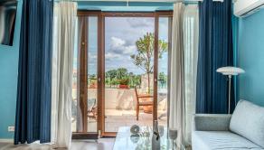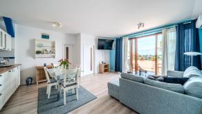 Apartmány sú vybavené kuchyňou s umývačkou riadu, obývacia izba s TV, kúpeľňou spojenou s toaletou, spálňou, klimatizáciou a terasou s nábytkom.