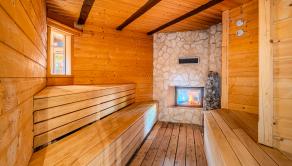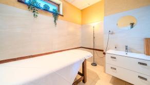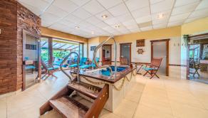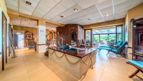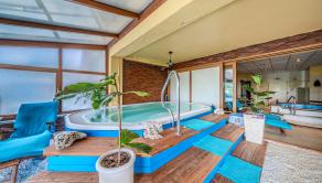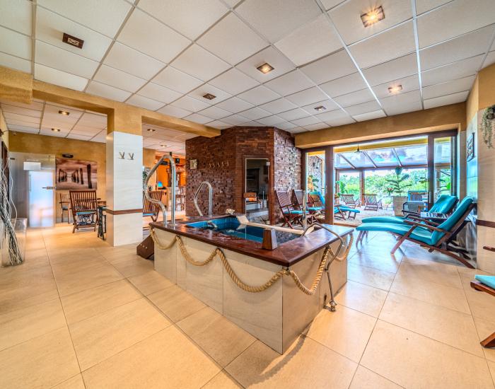 1. PP: vstupná hala, šatne, recepcia, wellness (masážna miestnosť, fínska sauna, parná sauna, infra sauna, ochladzovací bazén, sprchy, toalety, technická miestnosť), zimná záhrada s posedením a vírivým bazénom
