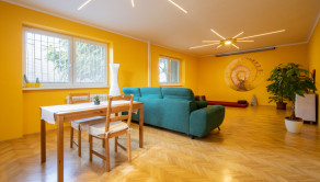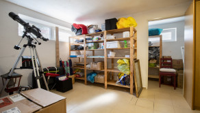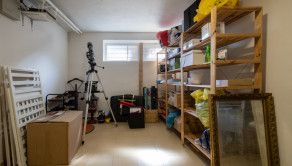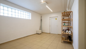 DISPOZÍCIA: 3 samostatné spálne na poschodí, priestranná spoločenská miestnosť na prízemí, 2x WC a kúpeľňa, kuchyňa, špajza, garáž, pivnica. Poschodie je kompletne zrekonštruované určené na bývanie. Na prízemí je možnosť zriadenia telocvične (pôvodne táto miestnosť bola využívaná na cvičenie jogy a meditácie pre viac ako 15 ľudí). V takomto prípade sa dá vytvoriť na prízemí šatňa aj sklad na športové pomôcky. Priestranný skladovací priestor v suteréne (100m² s viacerými miestnosťami) je vhodný na prevádzkovanie napr. internetového obchodu, alebo podnikovej predajne.