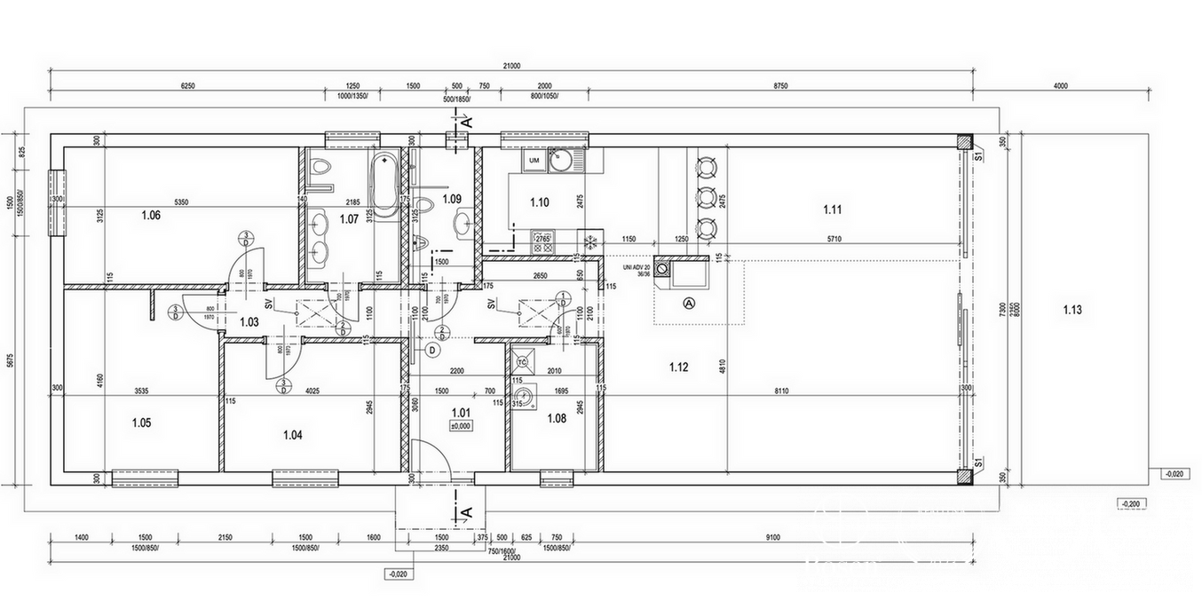 Dispozícia domu: Vstupná hala 6,6m2, Chodba 11,2m2, izba 16,7m2, izba 14,7m2, izba 11,8m2, kúpelňa 6,8m2, kúpelňa 4,7m2, technická miestnosť 5,9m2 a obyvačka s kuchyňou a jedálňou 66,5m2.