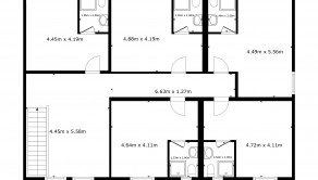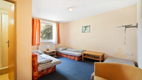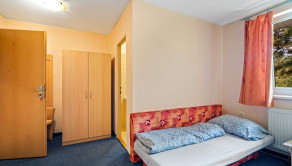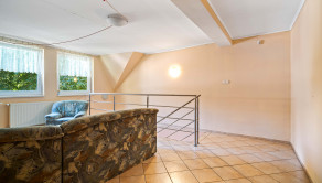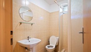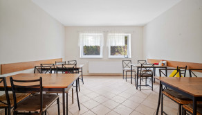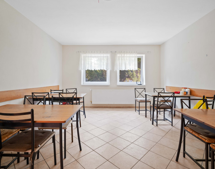 DISPOZÍCIA: Na prízemí sa nachádza vstupná chodba, jedálenská časť so spoločnou kuchynskou linkou, 3 izby, technická miestnosť a sklad. Z prízemia je výstup aj na terasu, ktorá sa nachádza v zadnej časti objektu. Poschodie ponúka 5 izieb. Všetky izby majú vlastnú kúpeľňu so sprchou a WC.