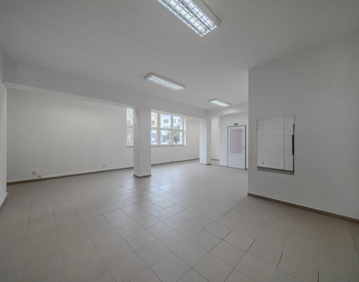 PRIESTOR: Podlahová plocha priestoru je 177,44 m2 a nachádza sa na prízemí bytového domu. Vchod je dobre viditeľný a prístupný priamo z ulice. Dispozíciou je: vstupná chodbička, kancelária (67,21 m2), 2x sklad, WC, kancelária (62,78 m2), sklad, predsieň, umyváreň, WC.