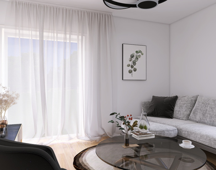 VYBAVENIE: Apartmán je dostupný v štádiu HOLOPRIESTOR, čo umožňuje budúcemu majiteľovi prispôsobiť si ho podľa vlastných predstáv. Každý apartmán je vybavený teplovodným podlahovým kúrením a predprípravou na inštaláciu solárnych panelov, čo zabezpečuje energetickú efektívnosť. Predpríprava pre kúpeľne a toalety je realizovaná systémom Geberit, čo zaručuje vysokú kvalitu a funkčnosť. Vykurovanie je zabezpečené moderným tepelným čerpadlom a okno je z izolačného trojskla, čo prispieva k vynikajúcej tepelnej a zvukovej izolácii. Pre tých, ktorí preferujú dokončenie bytu, je k dispozícii možnosť realizácie do štandardu za cenu 150 EUR/m² bez DPH.
