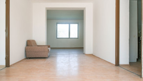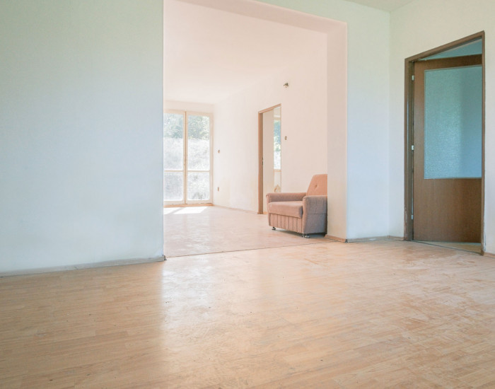 DISPOZÍCIA: Vstup do domu je presvetlený a umožňuje výstup na terasu. V prednej časti sa nachádza nepriechodná izba a samostatná kuchyňa. Cez prechodnú obývačku sa vstupuje do samostatnej izby a kúpeľne s vaňou a WC.