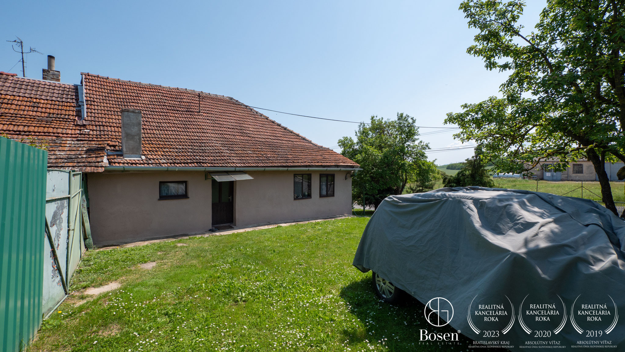 Realitná kancelária Bosen Malacky Vám ponúka na predaj 2 izbový rodinný dom s veľkým pozemkom, vhodný na chalupárčenie len 10 km od okresného mesta Hlohovec v obci Dolné Trhovište.