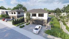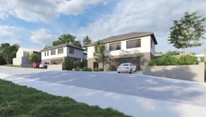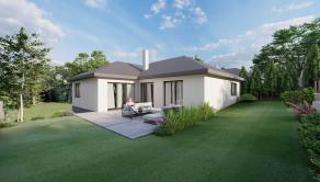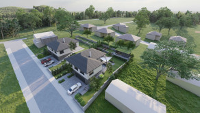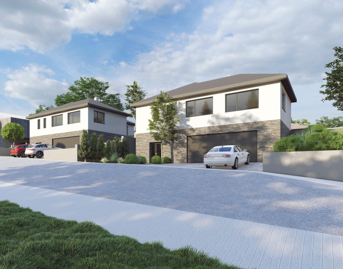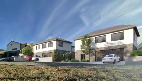 DOM: dvojpodlažný rodinný dom s krásnym výhľadom. Prvé podlažie (72m2) tvorí garáž pre dve autá s elektrickou posuvnou bránou (53m2), práčovňa (technická miestnosť) a vstupná chodba. Druhé podlažie (125m2) tvorí chodba, kuchyňa prepojená s obývačkou, špajza, kúpeľňa, samostané WC a tri samostatné izby, hlavná spálňa má aj šatník. Vstup na terasu je zabezpečený z obývačky. Nehnuteľnosť je možné kúpiť v štádiu "holodom" ako aj v štádiu "štandard": podlahy, dlažby, interiérové dvere a zárubne, sanita, vymaľované steny, osadené vypínače a zásuvky. Farebné prevedenie štandardu je na výbere klienta. Dom bude napojený na elektrinu a vodu. Vykurovanie je zabezpečené tepelným čerpadlom. Nehnuteľnosť je v štádiu prípravy výstavby a budú postavené dva identické domy vedľa seba. Termín ukončenia výstavby vrátane kolaudácie nehnuteľností je stanovený na koniec roka 2025.