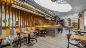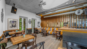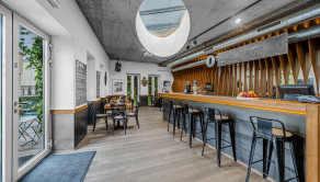 Prízemie: bar + 40 miest na sedenie, rotunda - 20 miest, terasa - 8 miest, sociálne zariadenia, technická miestnosť