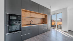 ZARIADENIE: Byt sa predáva čiastočne zariadený s kuchynskou linkou so vstavanými spotrebičmi (elektrická rúra, umývačka riadu, chladnička s mrazničkou, mikrovlnka, digestor a varná doska), vstavaný rolldorom v spálni, s klimatizáciou Daikin, jedálenským stolom, manželská posteľ bez matraca a pračka.