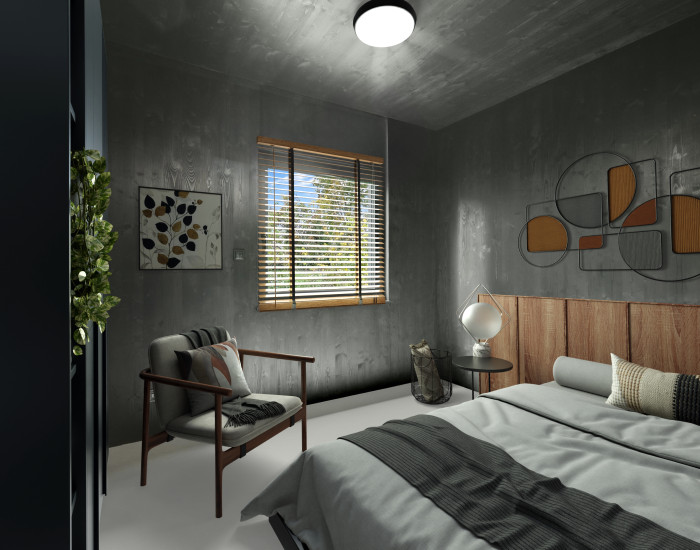 DISPOZÍCIA: Zadná budova (úžitková plocha 33,91 m²): predsieň, kúpeľňa so sprchovacím kútom, toaletou a umývadlom, obývačka s kuchynským kútom (príprava na krb a klimatizáciu), spálňa. Predná budova (2-podlažná, úžitková plocha 27,01 m²): predsieň, kúpeľňa so sprchovacím kútom, toaletou a umývadlom, izba s kuchynským kútom a samostatná miestnosť v podkroví.