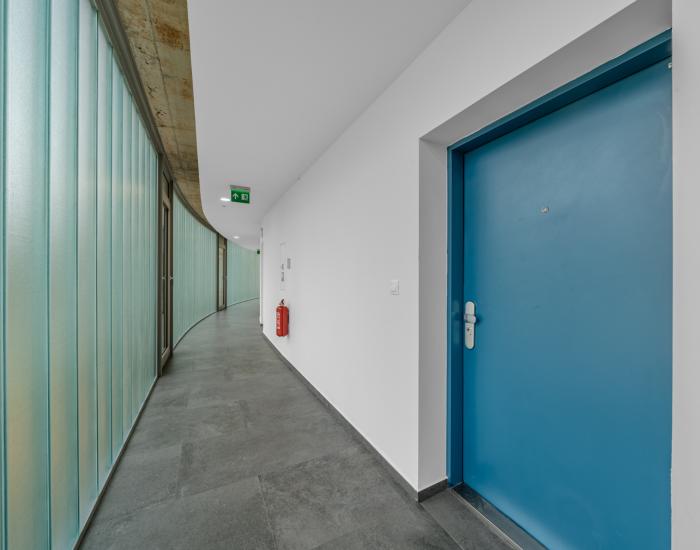 VYBAVENIE: Bytje vybavený bezpečnostnými vchodovými dverami, hliníkovými oknami a balkónovými dverami s izolačným trojsklom a predprípravou na exteriérové žalúzie. Obytné miestnosti majú kvalitné laminátové podlahy, terasy a balkóny sú pokryté keramickou mrazuvzdornou dlažbou a betónovými dlaždicami. Kuchyne a kúpeľne sú vybavené keramickou dlažbou. Objekt má centrálnu kotolňu a podlahové vykurovanie s predprípravou na klimatizáciu. Každý byt má prístup k optickému internetu ako aj k spoločnému exteriérovému bazénu.