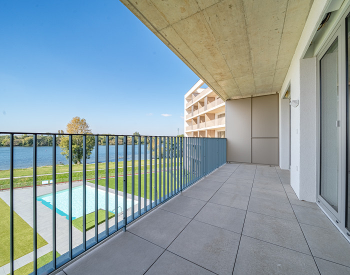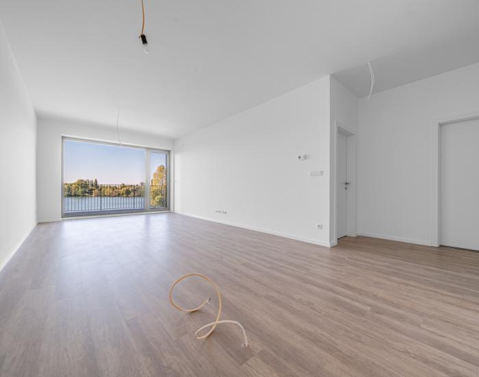 VYBAVENIE: Bytje vybavený bezpečnostnými vchodovými dverami, hliníkovými oknami a balkónovými dverami s izolačným trojsklom a predprípravou na exteriérové žalúzie. Obytné miestnosti majú kvalitné laminátové podlahy, terasy a balkóny sú pokryté keramickou mrazuvzdornou dlažbou a betónovými dlaždicami. Kuchyne a kúpeľne sú vybavené keramickou dlažbou. Objekt má centrálnu kotolňu a podlahové vykurovanie s predprípravou na klimatizáciu. Každý byt má prístup k optickému internetu ako aj k spoločnému exteriérovému bazénu.