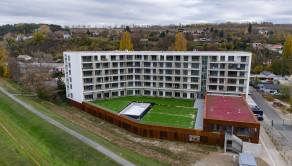 VYBAVENIE: Bytje vybavený bezpečnostnými vchodovými dverami, hliníkovými oknami a balkónovými dverami s izolačným trojsklom a predprípravou na exteriérové žalúzie. Obytné miestnosti majú kvalitné laminátové podlahy, terasy a balkóny sú pokryté keramickou mrazuvzdornou dlažbou a betónovými dlaždicami. Kuchyne a kúpeľne sú vybavené keramickou dlažbou. Objekt má centrálnu kotolňu a podlahové vykurovanie s predprípravou na klimatizáciu. Každý byt má prístup k optickému internetu ako aj k spoločnému exteriérovému bazénu.
