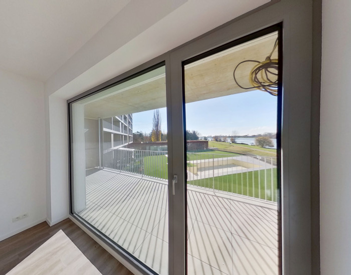 VYBAVENIE: Bytje vybavený bezpečnostnými vchodovými dverami, hliníkovými oknami a balkónovými dverami s izolačným trojsklom a predprípravou na exteriérové žalúzie. Obytné miestnosti majú kvalitné laminátové podlahy, terasy a balkóny sú pokryté keramickou mrazuvzdornou dlažbou a betónovými dlaždicami. Kuchyne a kúpeľne sú vybavené keramickou dlažbou. Objekt má centrálnu kotolňu a podlahové vykurovanie s predprípravou na klimatizáciu. Každý byt má prístup k optickému internetu ako aj k spoločnému exteriérovému bazénu.