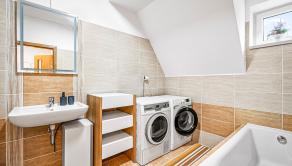 VYBAVENIE: Byt je vybavený bezpečnostnými vchodovými dverami, plastovými oknami a balkónovými dverami s izolačným trojsklom. Obytné miestnosti majú kvalitné laminátové podlahy, balkóny sú pokryté keramickou mrazuvzdornou dlažbou. Kúpeľne a chodby sú vybavené keramickou dlažbou. V apartmáne sa nachádza krb na tuhé palivo, ale aj termostat na riadenie teploty priamo z pohodlia apartmánu alebo diaľkovo pomocou aplikácie.