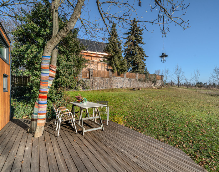 Na pozemku stojí plne využitelný mobilný domček, ktorý je vhodný aj na komerčné využitie.