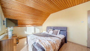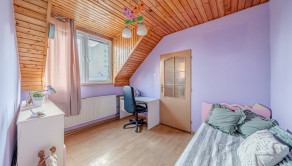 DISPOZÍCIA:Na prízemí domu sa nachádza chodba, ktorá slúži aj ako vstup a vedie na poschodie, ďalej samostatné WC a kúpeľňa, kuchyňa so špajzou, obývačka a dve samostatné izby; na poschodí je chodba, spálňa s terasou, samostatná priechodná izba vedúca do obývačky a kuchyne so špajzou, pričom sa tu nachádza aj WC a kúpeľňa.