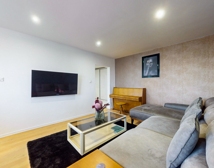 DISPOZÍCIA: Byt ponúka tri priestranné izby, ktoré sú elegantne a moderne zariadené, s dostatkom prirodzeného svetla. Priestranná vstupná hala je vybavená pohybovými senzormi osvetlenia a modernými vstavanými skriňami, ktoré poskytujú množstvo úložného priestoru. Bodové osvetlenie dotvára moderný a vkusný vzhľad. Zo vstupnej haly je priamy prístup do všetkých miestností bytu, čo zaručuje praktické a efektívne usporiadanie priestoru. Srdcom bytu je veľká a svetlá obývacia miestnosť, ideálna pre rodinné stretnutia alebo relax. Podlahy sú pokryté kvalitnými laminátovými podlahami. Talianske mramorové stierky dodávajú priestoru luxusný vzhľad a eleganciu. Moderná kuchyňa je vybavená nadštandardnou kuchynskou linkou, ktorá bola vyrobená na mieru z tých najkvalitnejších materiálov. Kuchyňa poskytuje dostatok úložného priestoru a miesta na varenie, čo ocenia nielen vášniví kuchári. Priestranná spálňa je vybavená komfortnou manželskou posteľou a veľkorysou vstavanou skriňou, ktorá ponúka dostatok úložného priestoru. Z izby vedie priamy výstup na loggiu, ktorá je ideálna na rannú kávu či oddych. Druhá izba ponúka flexibilitu, či už ako detská izba, pracovňa alebo hosťovská izba. Je dostatočne priestranná a pripravená na okamžité využitie. Kúpeľňa je vybavená priestranným sprchovacím kútom, kde boli použité vysokokvalitné obklady a dlažby, ktoré dodávajú priestoru sofistikovaný vzhľad. Moderné vodoinštalácie a detaily zaručujú praktickosť a komfort. Samostatné WC je prakticky zariadené.