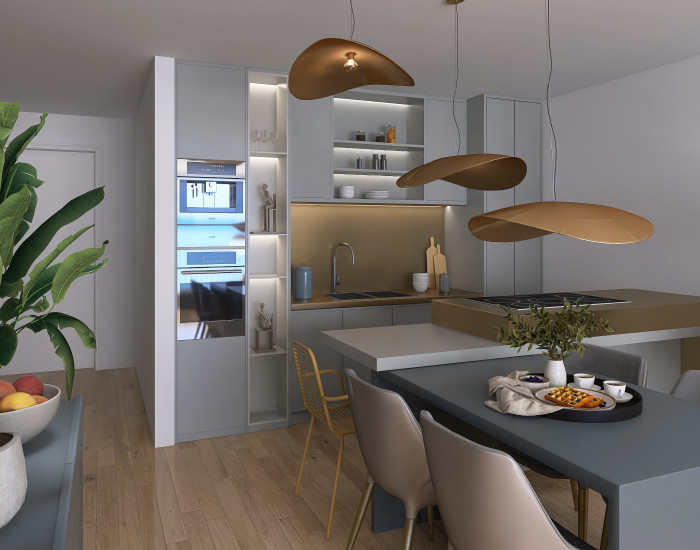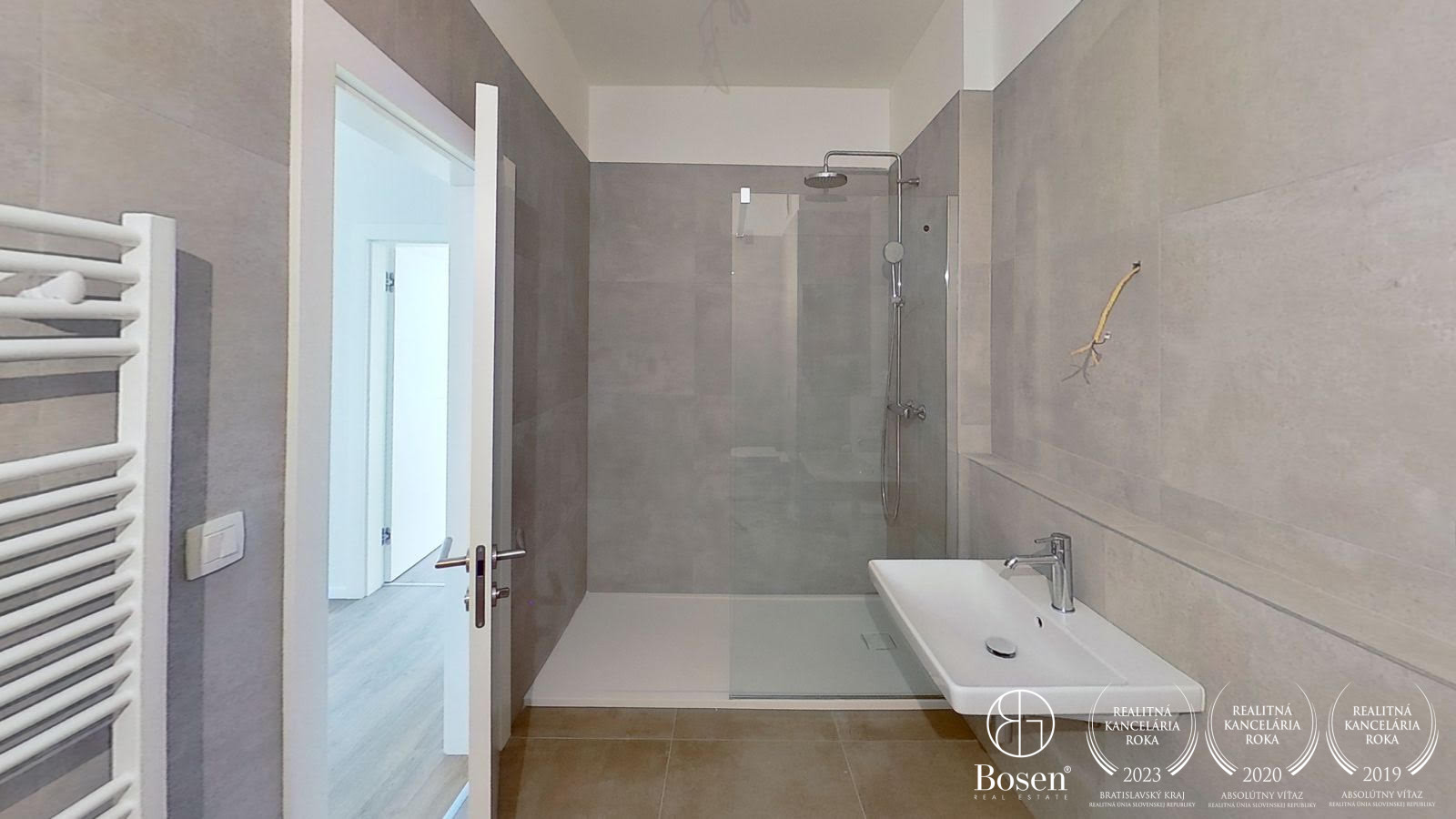 VYBAVENIE: Byt je vybavený bezpečnostnými vchodovými dverami, hliníkovými oknami a balkónovými dverami s izolačným trojsklom a predprípravou na exteriérové žalúzie. Obytné miestnosti majú kvalitné laminátové podlahy. Kuchyne a kúpeľne sú vybavené keramickou dlažbou. V byte je podlahové vykurovanie a predpríprava na klimatizáciu. Objekt má centrálnu kotolňu. Každý byt má prístup k optickému internetu. Komplex disponuje vlastným exteriérovým bazénom.