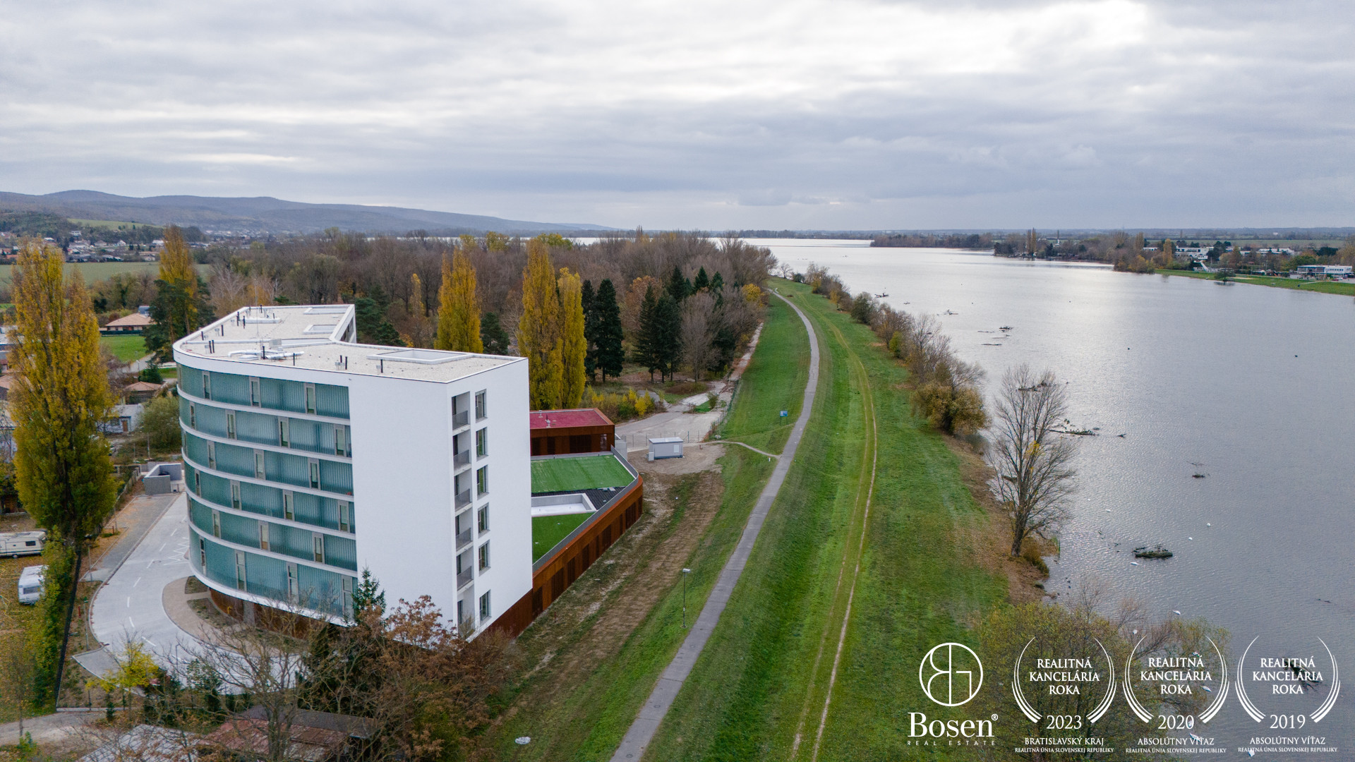 LOKALITA: Projekt BLUEWAVE je situovaný v bezprostrednej blízkosti rieky Váh, priamo pod úpätím pohoria Považský Inovec, na ľavom nábreží vodnej nádrže Sĺňava, vhodnej na relaxáciu, oddych či šport. Kúpeľný ostrov v Piešťanoch je v pešej dostupnosti od rezortu, príjemnou prechádzkou po nábreží Váhu, rovnako ako centrum mesta s kompletnou občianskou vybavenosťou.
